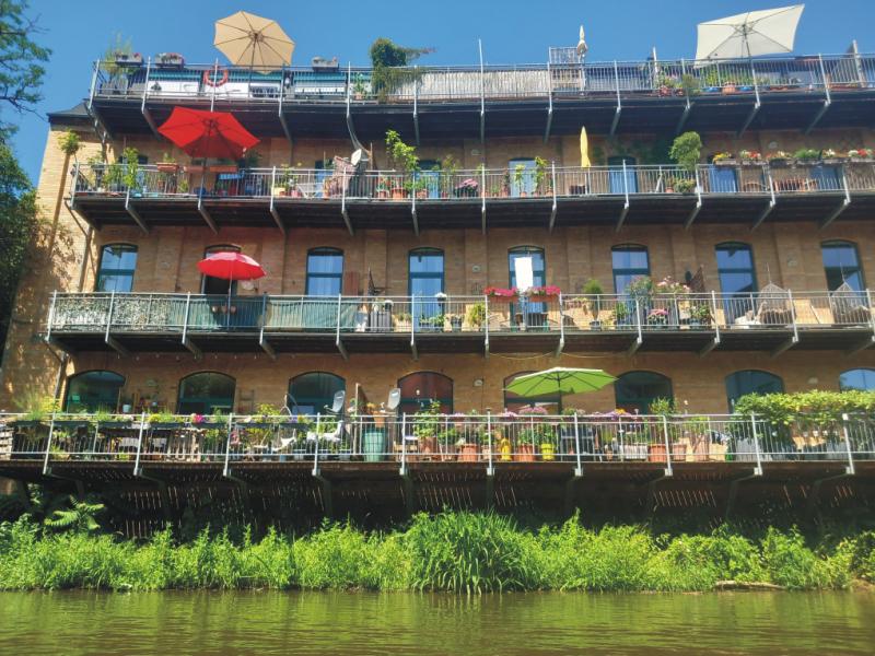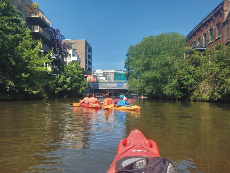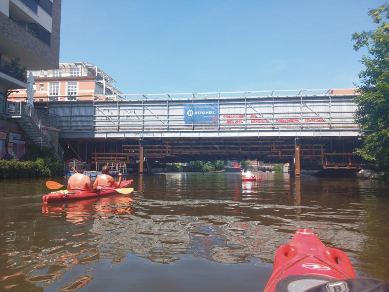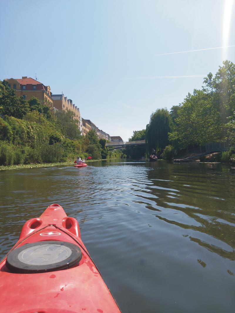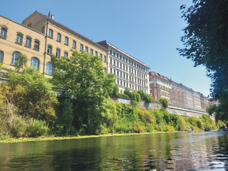 Der "KARL-HEINE-KANAL" führt dicht an bebauten Gebäuden vorbei: