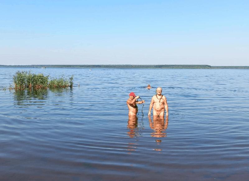 Um 09:15 ging es also zunächst zum beliebten "Senftenberger See" zu einem ersten Bade. So gut wie noch kaum ein Besucher (Sonntag früh) wagten wir uns an einem Textilstrand in die Fluten. Das Wasser klar und auch erfrischend (keine Sommerwarme Brühe, wie derzeit an vielen Seen), war das der Beginn einer wundervollen Tour.