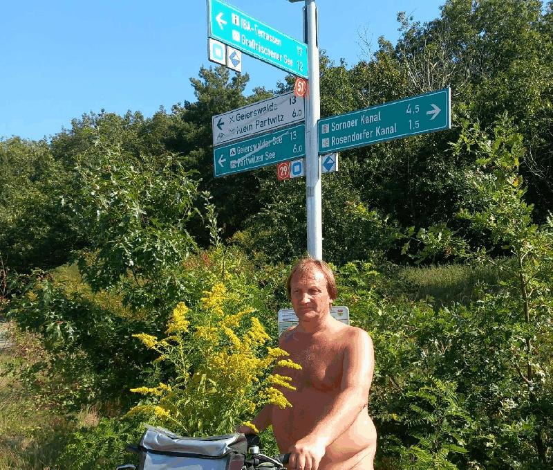 Da alle bereits gefluteten Seen in dieser Gegend relativ groß sind, sind entsprechend auch die Radwege ziemlich lang. Aber das wollten wir auch: Nackt radeln in freier Natur bei besten Sonnenwetter.