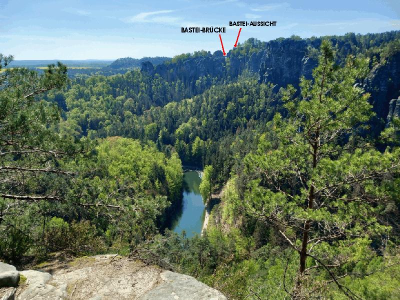 Man kann von hier aus sogar die Bastei-Brücke und die neue Bastei-Aussicht